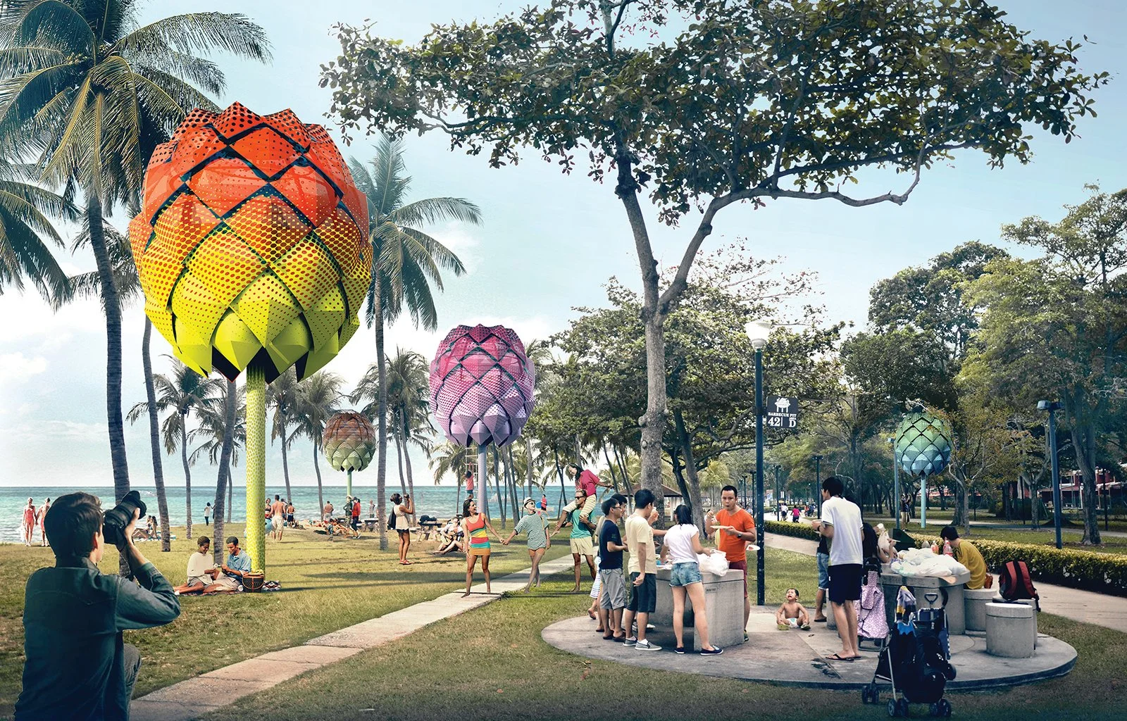 SPARK’s Beach Hut was designed nearly a decade ago as a quiet act of optimism: to turn waste into shelter, pollution into possibility. Clad in shingles made from recycled ocean plastics (HDPE2), the structure drew inspiration from the Casuarina seedpods scattered along Singapore’s beaches. It wasn’t a manifesto or a solution, just a small shelter built to sit lightly on the shore, hoping to reframe the conversation around plastic waste.