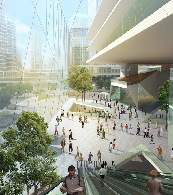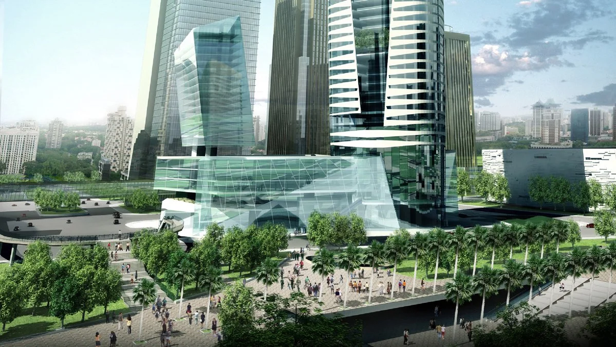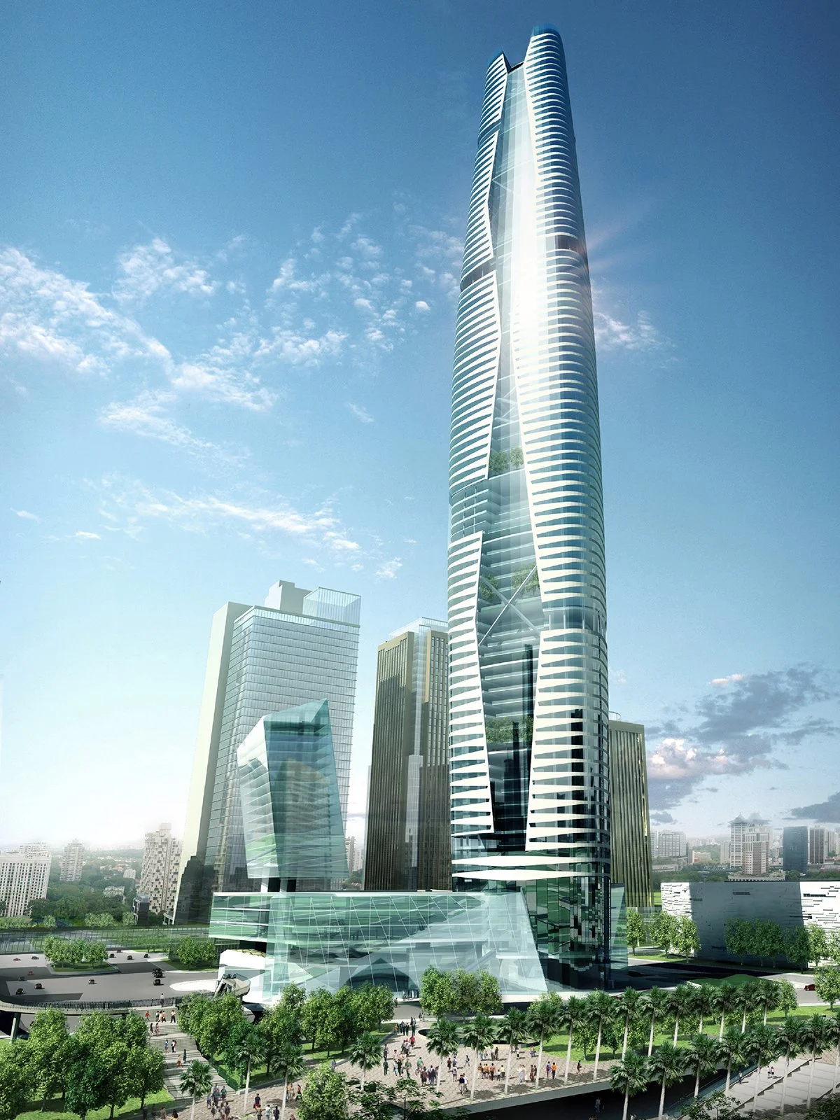The 420m, 100-storey mixed use East Tower consists of office accommodation, hotel and retail and leisure facilities deck on top of the 4 storey retail podium. Level B2 connects to the city metro via a shopping street. Levels B2 to level 4 are retail also housing the primary lobbies for the serviced residence, office and hotel. Levels 6 to 66 are offices, floors 67 and 68 are mechanical floors, levels 69 to 98 accommodate the Ascott residential / hotel facility, with levels 99 and 100 housing the city observation deck and destination restaurant. Internal sky gardens punctuate the office tower every 10 floors providing vantage points towards the river and city, increasing the convivial connectivity between office user groups and animating the building elevation as a gesture to the city and its skyline. At the summit of the tower, an observation gallery captures 360 degree views of the city.