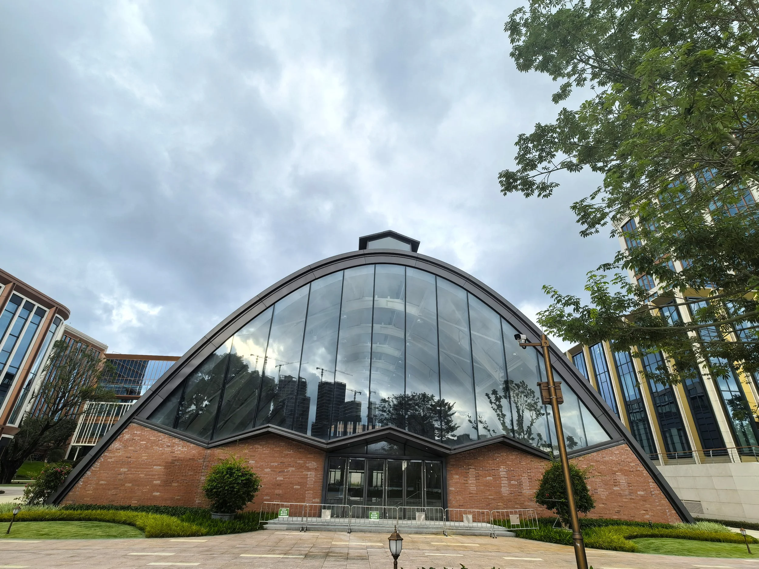 The sugar factory with its distinctive vaulted arch is a product of the industrial heritage of the site. As a Grade A conservation building, it has been integrated into the design of the development, alongside 10 existing large trees. The sugar factory will be repurposed as an exhibition and events hall, with the original solid façade facing the waterfront being converted to glass to reflect its new program and optimize views towards the park and river.