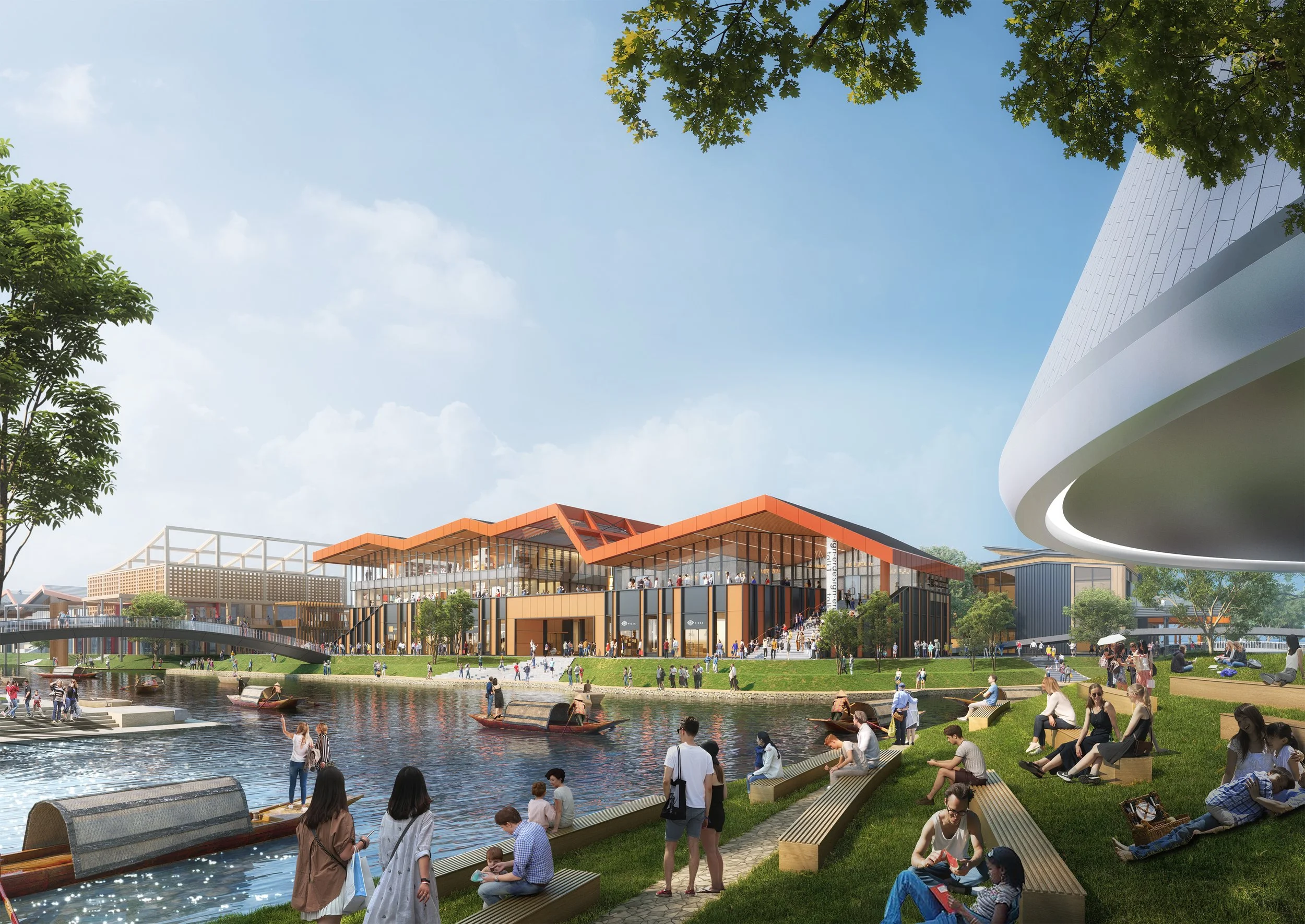 SPARK ‘s proposal establishes a development framework for the former light industrial and residential village to create a new cultural and economic network of extraordinary programmes and events. Inspired by the processional principles of Suzhou’s traditional Chinese garden design and their harmonic relationship with water, Suzhou’s world famous natural resource. The idea of creating a ‘social picturesque’ where the views to and from the various buildings and spaces arranged around the lake and waterfront give meaning and identity to the master plan. There is great subtlety in this “poetic” approach with the built interventions stemming from the desire to create a connected cultural-tourism destination around water, a catalyst for a future inspired by the best of the past. Human relationship to water in Suzhou is critically important, historically it was used for pragmatic puposes like trade and industry but now its primary value is one of amenity. SPARK’s proposal maximise this value so all routes / pathways are connected and have aspect to the water